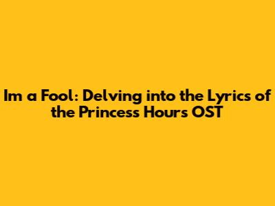 Hey everyone! Ever found yourself humming a tune from a K-Drama and just had to know what the lyrics meant? Well, today, we're diving deep into the heart of one of the most memorable songs from the beloved series, Princess Hours (also known as Goong): "I'm a Fool." This song isn't just a catchy melody; it's a window into the emotional turmoil and tender moments of the characters we grew to adore. Let's unpack the beauty and meaning behind this iconic track, exploring its significance within the drama and why it continues to resonate with fans years after its release.