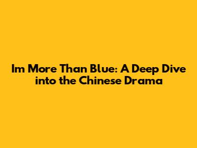 Hey guys! Ever stumbled upon a drama that just hits you right in the feels? Well, let me tell you about I'm More Than Blue, a Chinese drama that's been making waves. This isn't your average fluffy romance, folks. We're talking about a story that's raw, emotional, and dives deep into the complexities of love, loss, and the choices we make. So, buckle up, because we're about to unpack everything from the plot and characters to why this drama is worth your time.
