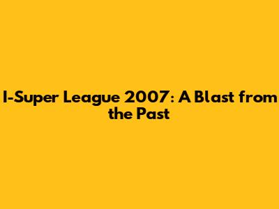 I-Super League 2007: A Blast From The Past