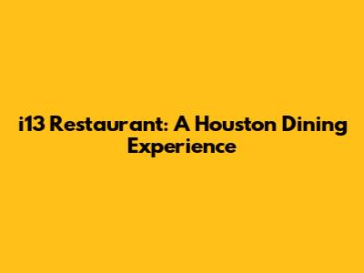 I13 Restaurant: A Houston Dining Experience