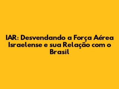 IAR: Explorando A Força Aérea Israelense E Sua Relação Com O Brasil