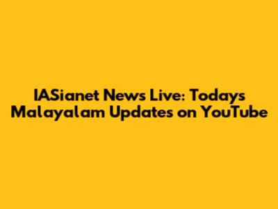 IASianet News Live: Today's Malayalam Updates On YouTube