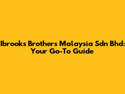 Hey guys! Ever heard of Ibrooks Brothers Malaysia Sdn Bhd? If you're scratching your head, don't worry! This comprehensive guide will break down everything you need to know about this company. We'll dive into what they do, their impact, and why they might be relevant to you. So, buckle up and let's get started!