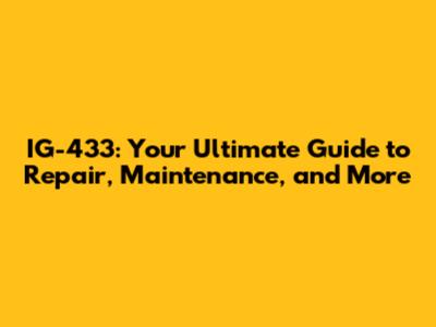 IG-433: Your Ultimate Guide To Repair, Maintenance, And More