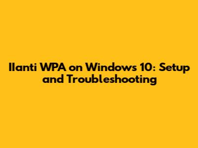 IIanti WPA On Windows 10: Setup And Troubleshooting