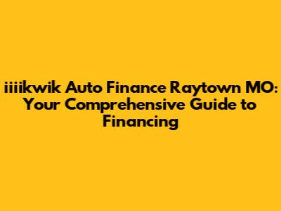 Iiiikwik Auto Finance In Raytown, MO: Your Guide