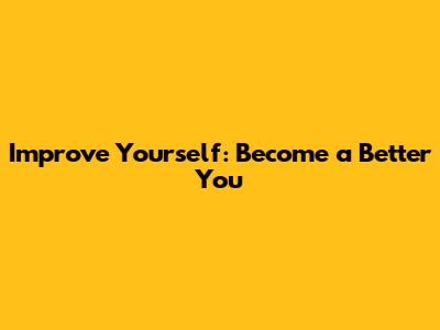 Improve Yourself: Become A Better You