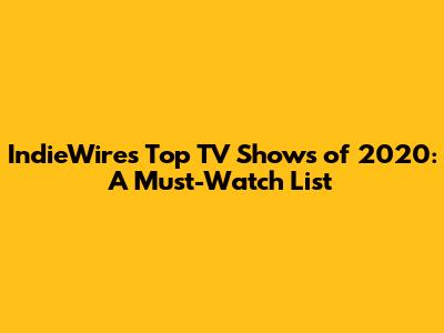 Alright guys, let's talk about some of the actual shows that blew everyone away in 2020, according to the discerning eyes at IndieWire. While the complete list is what you'll want to pore over, we can highlight a few that truly embodied the spirit of IndieWire's best TV shows of 2020. Think about the series that offered biting social commentary wrapped in compelling drama, or those that bravely tackled complex themes with nuance and authenticity. These are the shows that weren't afraid to be difficult, to be messy, or to challenge audiences. They provided a mirror to our times, reflecting the anxieties, hopes, and absurdities of 2020 in ways that were both profound and entertaining. For instance, a critically acclaimed limited series might have explored historical events with a fresh perspective, offering new insights and sparking important dialogues. Or perhaps a quirky, character-driven comedy managed to find humor in the darkest of circumstances, proving the resilience of the human spirit. IndieWire's picks often include shows that excel in every aspect of production – from the screenplay and acting to the direction and editing. They are the series that showcase the power of television to inform, to move, and to inspire. These selections are a testament to the incredible talent and creativity present in the television industry, demonstrating that even in a challenging year, groundbreaking storytelling continued to flourish. They represent a diverse range of voices and experiences, ensuring that the list reflects the multifaceted nature of contemporary society. By highlighting these specific series, IndieWire provides a valuable roadmap for viewers seeking out television that is not only engaging but also artistically significant, offering a deeper understanding of the cultural landscape and the narratives that shaped it. Each show, in its own unique way, contributed to the rich tapestry of television that defined 2020, making them essential viewing for anyone interested in the medium's finest achievements.