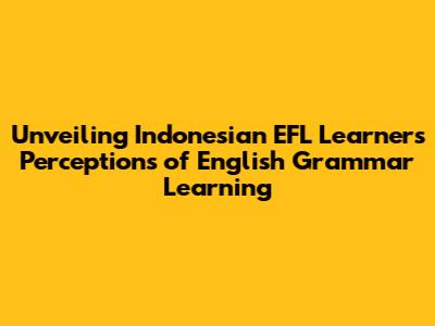Indonesian EFL Learners: English Grammar Perception