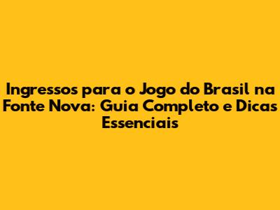 Ingressos Brasil Na Fonte Nova: Guia Completo Para Comprar