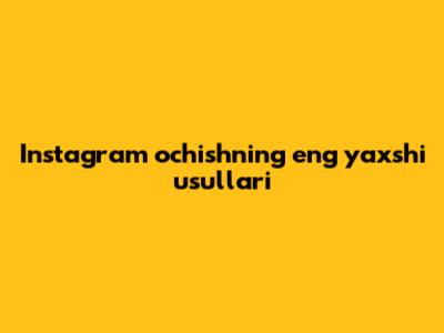 Instagram Ochishning Eng Yaxshi Usullari