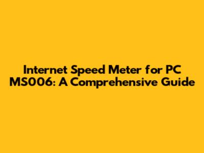 Internet Speed Meter For PC MS006: A Comprehensive Guide