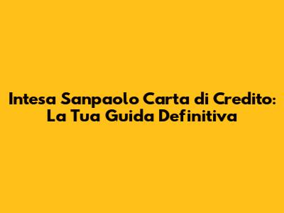 Intesa Sanpaolo Carta Di Credito: Guida Completa E Consigli Utili
