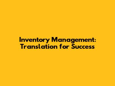 Inventory Management: Translation For Success
