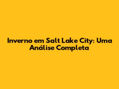 Inverno Em Salt Lake City: O Que Esperar?