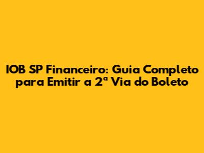 IOB SP Financeiro: Sua 2ª Via Do Boleto Sem Complicações