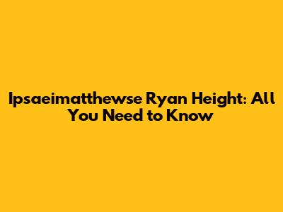 Ipsaeimatthewse Ryan Height: All You Need To Know
