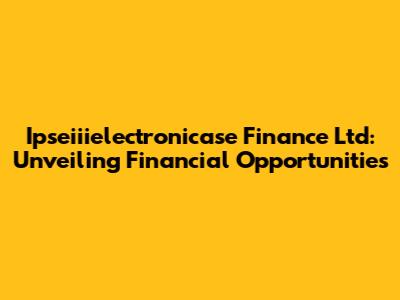 Ipseiiielectronicase Finance Ltd: Your Guide To Financial Success