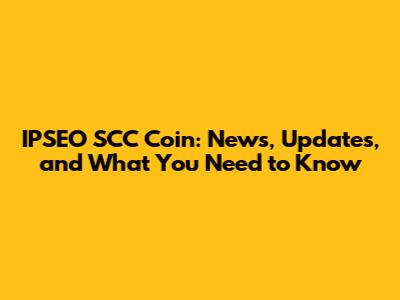 IPSEO SCC Coin: News, Updates, And What You Need To Know