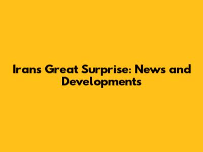 Iran's Great Surprise: News And Developments
