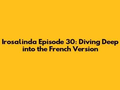 Hey guys, let's dive into the Irosalinda Episode 30 in its French version! This episode is packed with drama, romance, and those classic telenovela twists that keep us hooked. If you're anything like me, you've probably been waiting on the edge of your seat, dying to know what happens next. So, grab your snacks, get comfy, and let's break down everything that went down in this epic episode. We're going to cover the major plot points, character developments, and maybe even a few of those OMG moments that had us all screaming at our screens. Let's explore the intricacies of the storyline, examine the characters' motivations, and appreciate the nuances of the French adaptation. This exploration goes beyond a simple summary; it's a deep dive into the heart of the narrative, examining the key themes, relationships, and emotional journeys. We'll be looking closely at how the French version of Irosalinda handles the source material, and where it may diverge. So, whether you're a seasoned fan or just starting, this is your ultimate guide to episode 30.