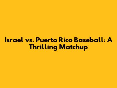 Israel Vs. Puerto Rico Baseball: A Thrilling Matchup