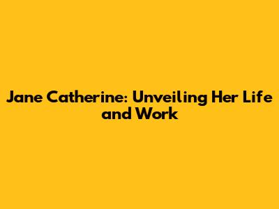 Jane Catherine: Unveiling Her Life And Work