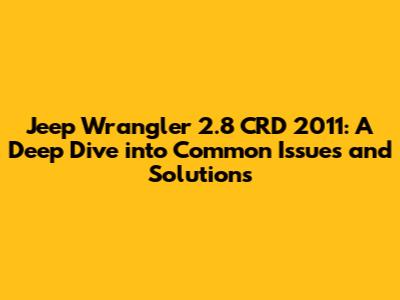 Hey guys! Ever thought about owning a Jeep Wrangler 2.8 CRD 2011? It's a fantastic vehicle known for its off-road prowess and rugged charm. However, like any car, it has its quirks. This article is your ultimate guide to understanding the Jeep Wrangler 2.8 CRD 2011, from common problems to effective solutions. We'll explore everything, from engine troubles to electrical gremlins, ensuring you're well-informed. Whether you're a current owner or considering buying one, this will help you navigate the world of the Wrangler 2.8 CRD. Get ready to dive deep into what makes this SUV tick and how to keep it running smoothly. Let’s get started and make sure your Jeep adventures are always top-notch!