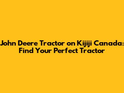 John Deere Tractor On Kijiji Canada: Find Your Perfect Tractor