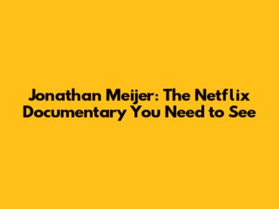Jonathan Meijer: The Netflix Documentary You Need To See