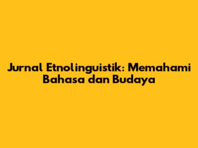Jurnal Etnolinguistik: Memahami Bahasa Dan Budaya