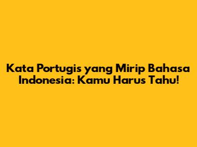 Kata Portugis Yang Mirip Bahasa Indonesia: Kamu Harus Tahu!