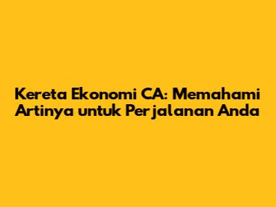 Hai, teman-teman! Pernahkah kalian bertanya-tanya, apa sih sebenarnya maksud dari singkatan "CA" pada kereta ekonomi? Nah, kalian berada di tempat yang tepat! Mari kita kupas tuntas tentang Kereta Ekonomi CA ini. Kita akan membahas apa itu sebenarnya, mengapa penting untuk diketahui, dan bagaimana hal ini memengaruhi perjalanan kereta kalian. Jadi, siapkan diri untuk informasi yang seru dan bermanfaat!