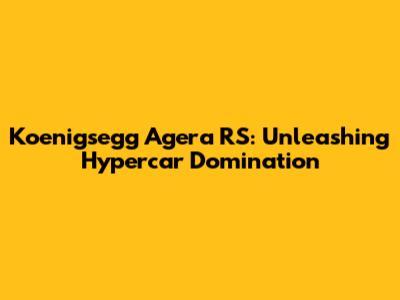 Koenigsegg Agera RS: Ultimate Hypercar Guide