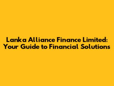 Hey guys! Ever heard of Lanka Alliance Finance Limited? If you're navigating the financial landscape in Sri Lanka, this name might ring a bell. But if you're new to the scene, or just looking for a reliable financial partner, you've come to the right place. We're diving deep into what Lanka Alliance Finance is all about, exploring their services, and figuring out why they might be the right fit for your financial needs. Let's get started!