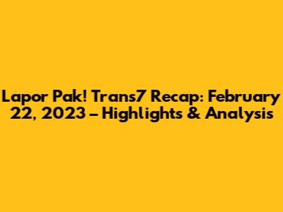 Lapor Pak! Trans7 Recap: February 22, 2023 – Highlights & Analysis