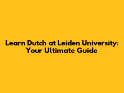 Learn Dutch At Leiden University: Your Ultimate Guide