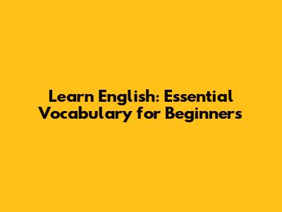 Learn English: Essential Vocabulary For Beginners
