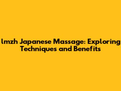 Lmzh Japanese Massage: Exploring Techniques And Benefits