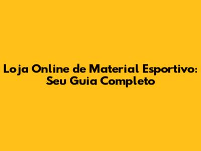 Loja Online De Material Esportivo: Seu Guia Completo