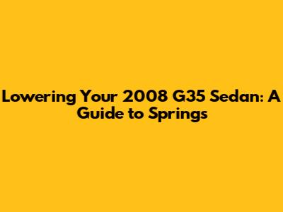 Lowering Your 2008 G35 Sedan: A Guide To Springs