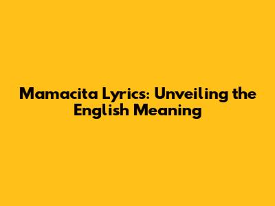 Mamacita Lyrics: Unveiling The English Meaning