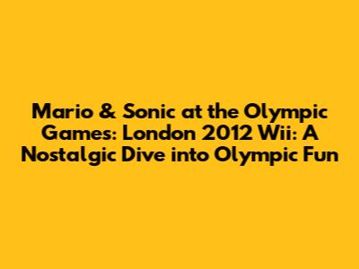 Hey guys! Remember the buzz around Mario & Sonic at the Olympic Games: London 2012 on the Wii? It was a massive hit, and for good reason! This game was more than just a collection of mini-games; it was a celebration of the Olympics, blending the iconic worlds of Mario and Sonic. Let's take a trip down memory lane and explore what made this game so special. From its gameplay and characters to its overall impact, we'll cover everything that made this a must-have for the Wii.