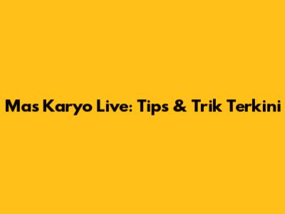 Mas Karyo Live: Tips & Trik Terkini