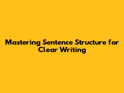 Mastering Sentence Structure For Clear Writing