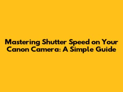 Mastering Shutter Speed On Your Canon Camera: A Simple Guide