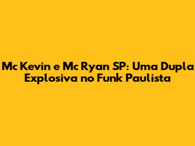 Mc Kevin E Mc Ryan SP: O Impacto No Funk Paulista