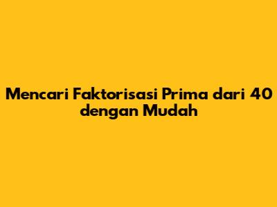 Mencari Faktorisasi Prima Dari 40 Dengan Mudah