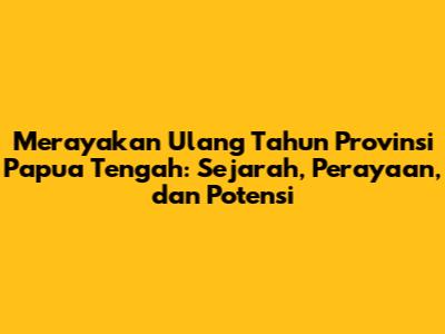 Ulang tahun Provinsi Papua Tengah merupakan momen penting yang dirayakan dengan penuh semangat oleh masyarakat setempat. Guys, perayaan ini bukan hanya sekadar seremoni, tapi juga menjadi wadah untuk merenungkan perjalanan sejarah, merayakan keberagaman budaya, serta mengidentifikasi potensi daerah untuk kemajuan di masa depan. Mari kita telusuri lebih dalam mengenai perayaan istimewa ini, mulai dari sejarah pembentukan provinsi, berbagai acara perayaan yang meriah, hingga potensi daerah yang menjanjikan.