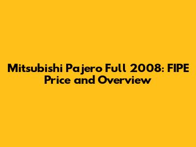 Hey guys! Today, we're diving deep into the Mitsubishi Pajero Full 2008, focusing on its FIPE price and giving you a comprehensive overview. If you're considering buying or selling this SUV, or you're just curious about its market value, you've come to the right place. Let's get started!